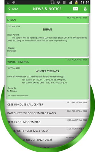 view photo gallery, read notices, view paintings, communicate with teachers and